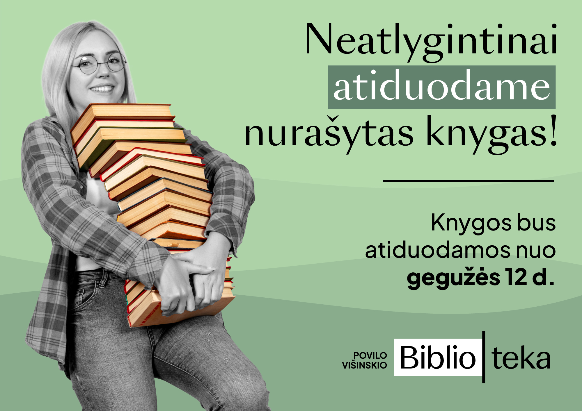 Knygos atiduodamos remiantis LR kultūros ministro įsakymu „Dėl bibliotekų fondo apsaugos nuostatų patvirtinimo“ (2024-07-01). Povilo Višinskio biblioteka neatsako už fizinių ir juridinių asmenų veiksmus, atliktus naudojantis jų nuosavybėn perduotomis bibliotekos nurašytomis knygomis.