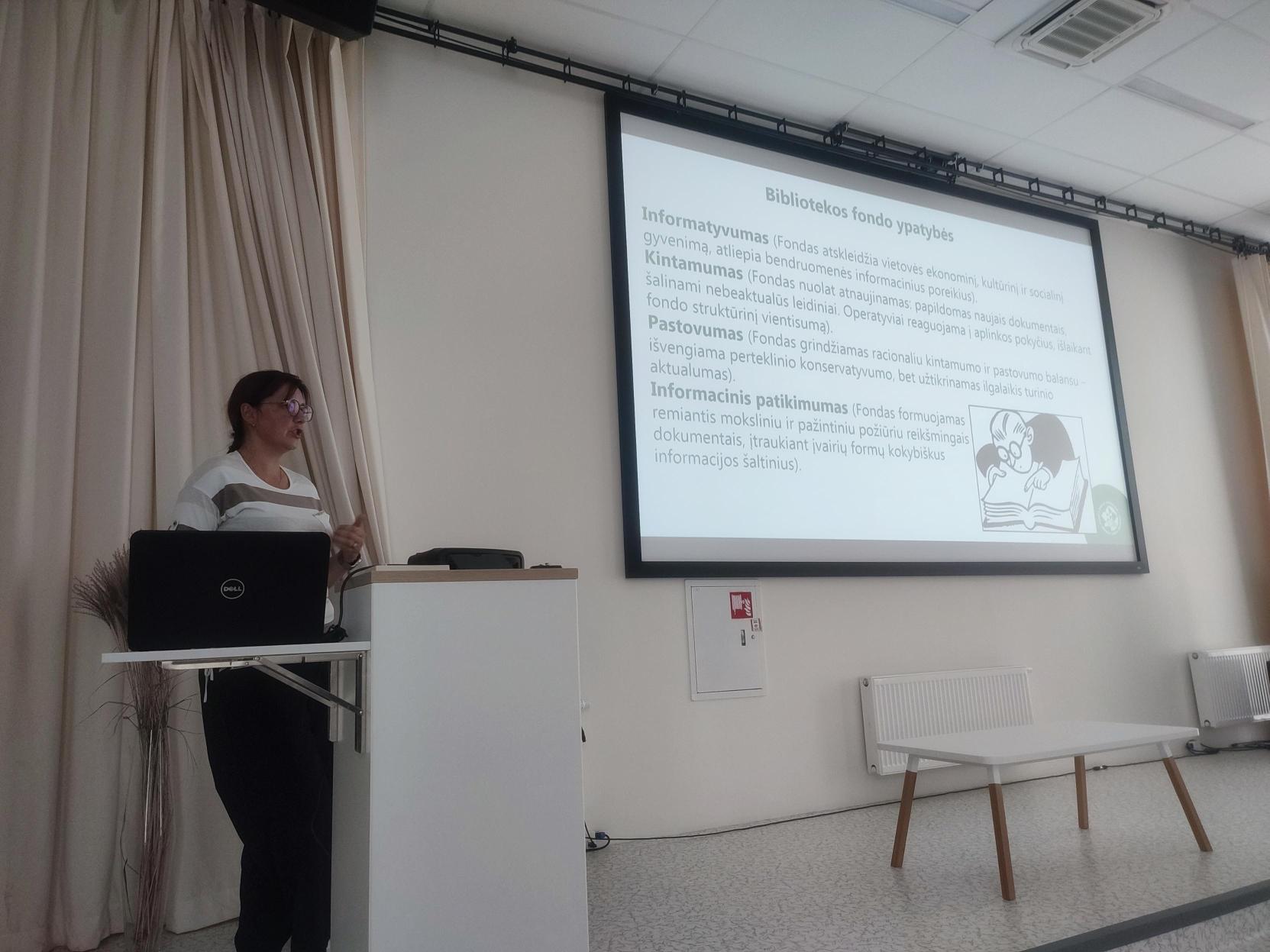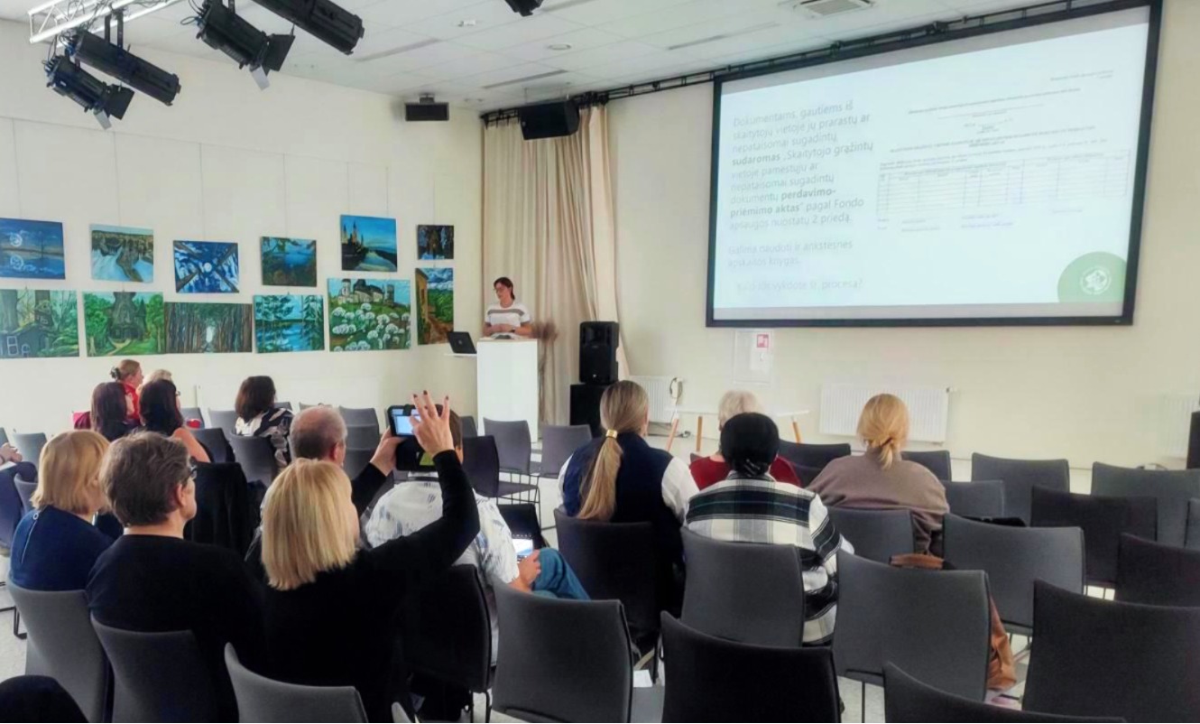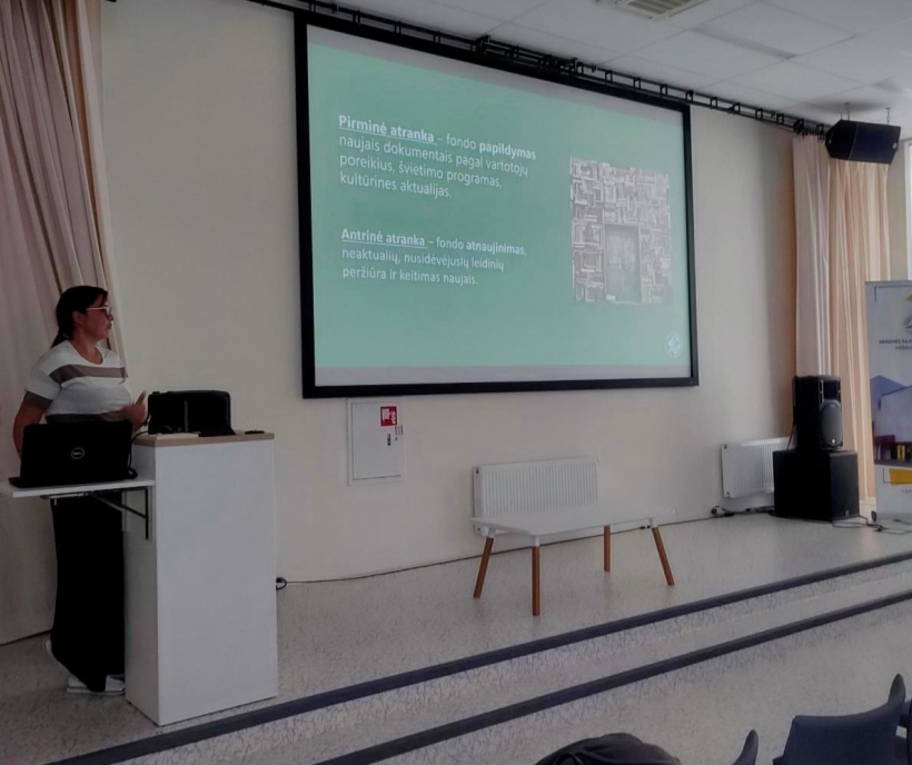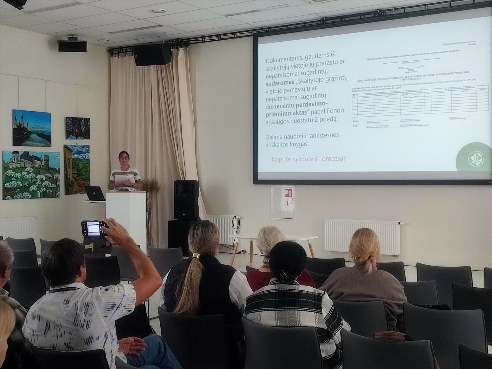 Mokymus vedė Informacijos išteklių skyriaus vedėja Laura Vladykienė, kuri dalyviams pristatė aktualius teisės aktus, reglamentuojančius fondų tvarkymą. Buvo aptarta, kaip tinkamai formuoti fondą, atsižvelgiant į vartotojų poreikius, ir kaip užtikrinti dokumentų apsaugą.