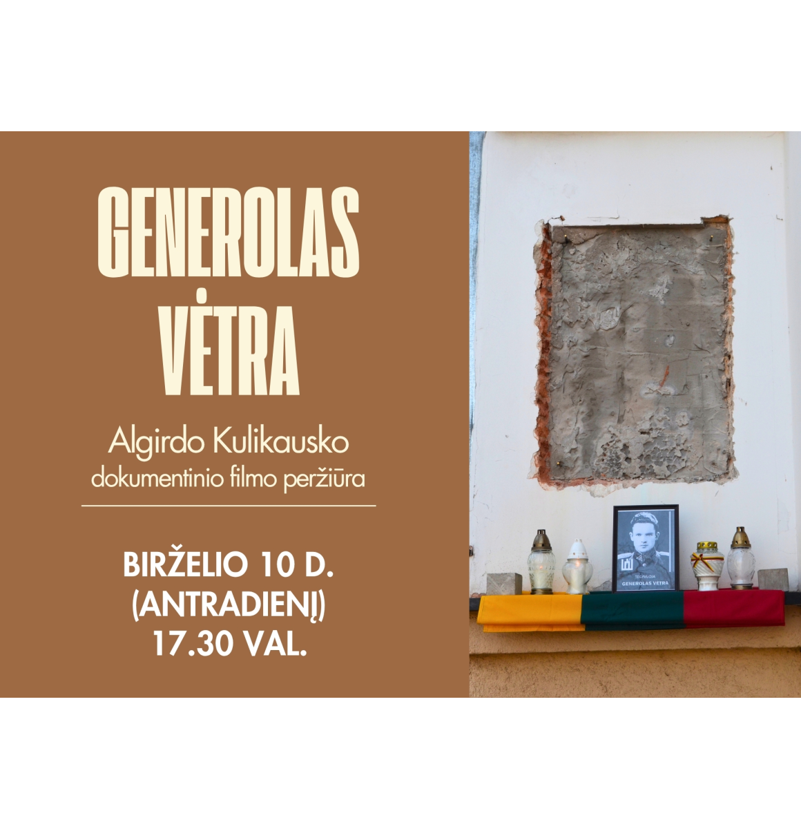 Birželio 10 d., antradienį, 17.30 val. kviečiame į dokumentinio filmo „Generolas Vėtra“ peržiūrą, kuri vyks Šiaulių apskrities Povilo Višinskio viešosios bibliotekos Didžiojoje skaitykloje (III a.).