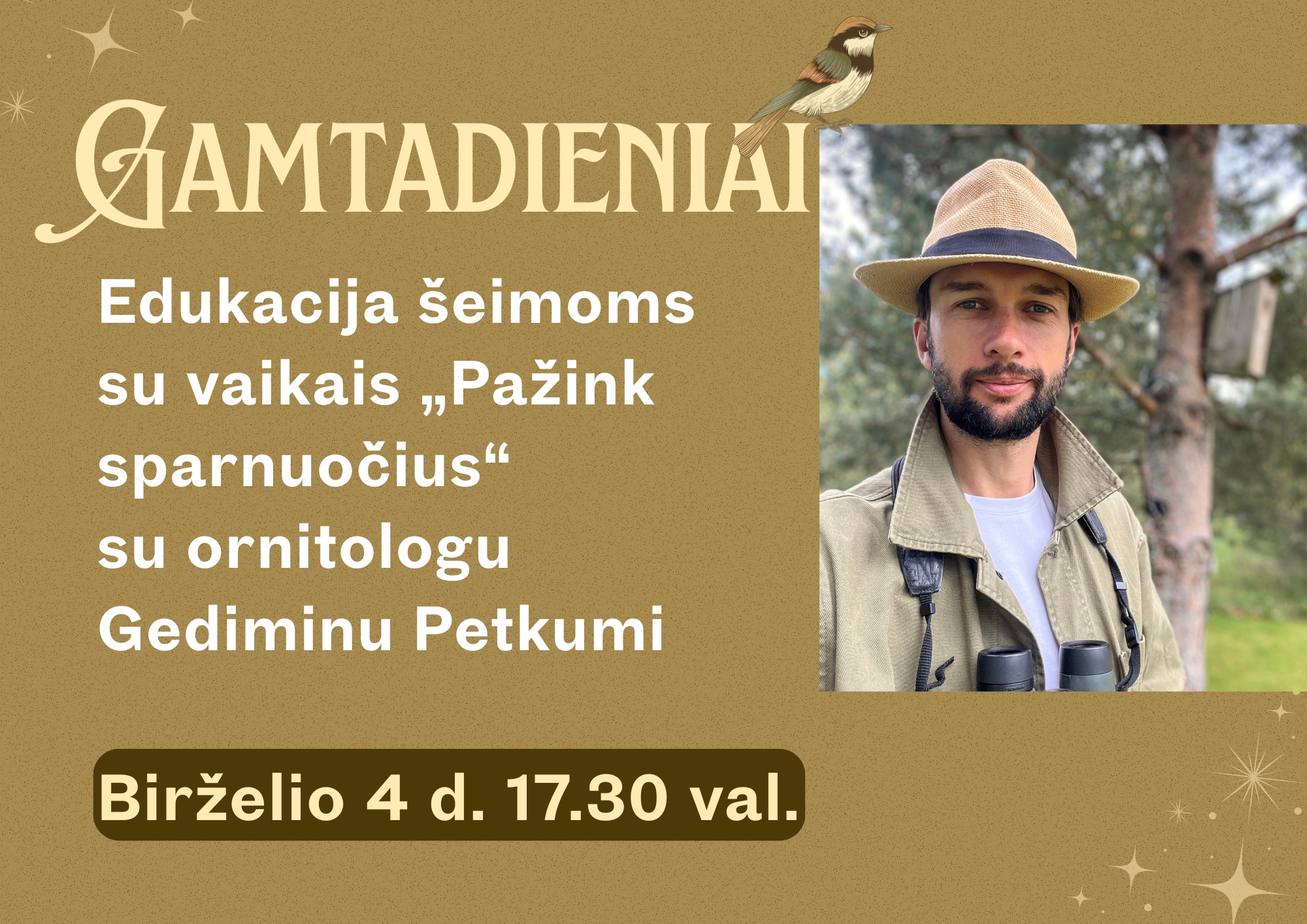 Edukacija skirta gamtos mylėtojams, tiems, kurie nori sužinoti daugiau apie paukščius ir pažvelgti į juos ne tik pro žiūronus, bet ir savo širdimi.