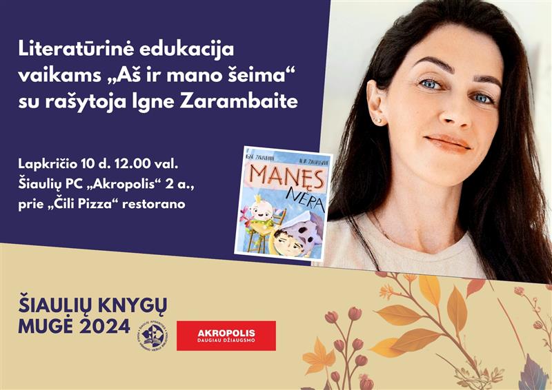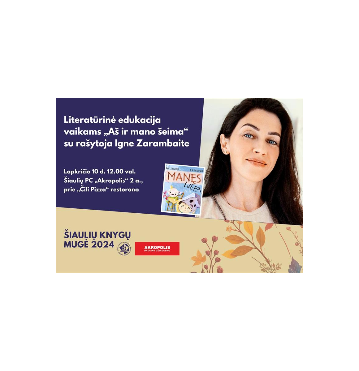 Lapkričio 10 d., sekmadienį, 12.00–14.00 val. visus vaikus ir jų tėvelius kviečiame į rašytojos Ignės Zarambaitės literatūrinę edukaciją „Aš ir mano šeima“ Šiaulių PC „Akropolyje“!