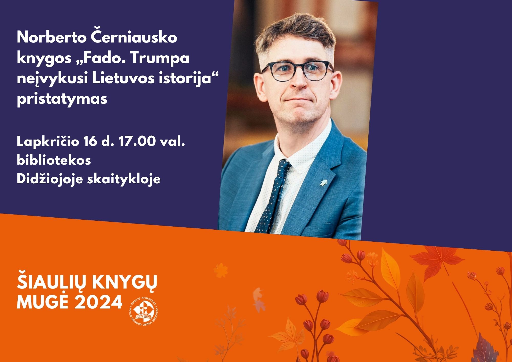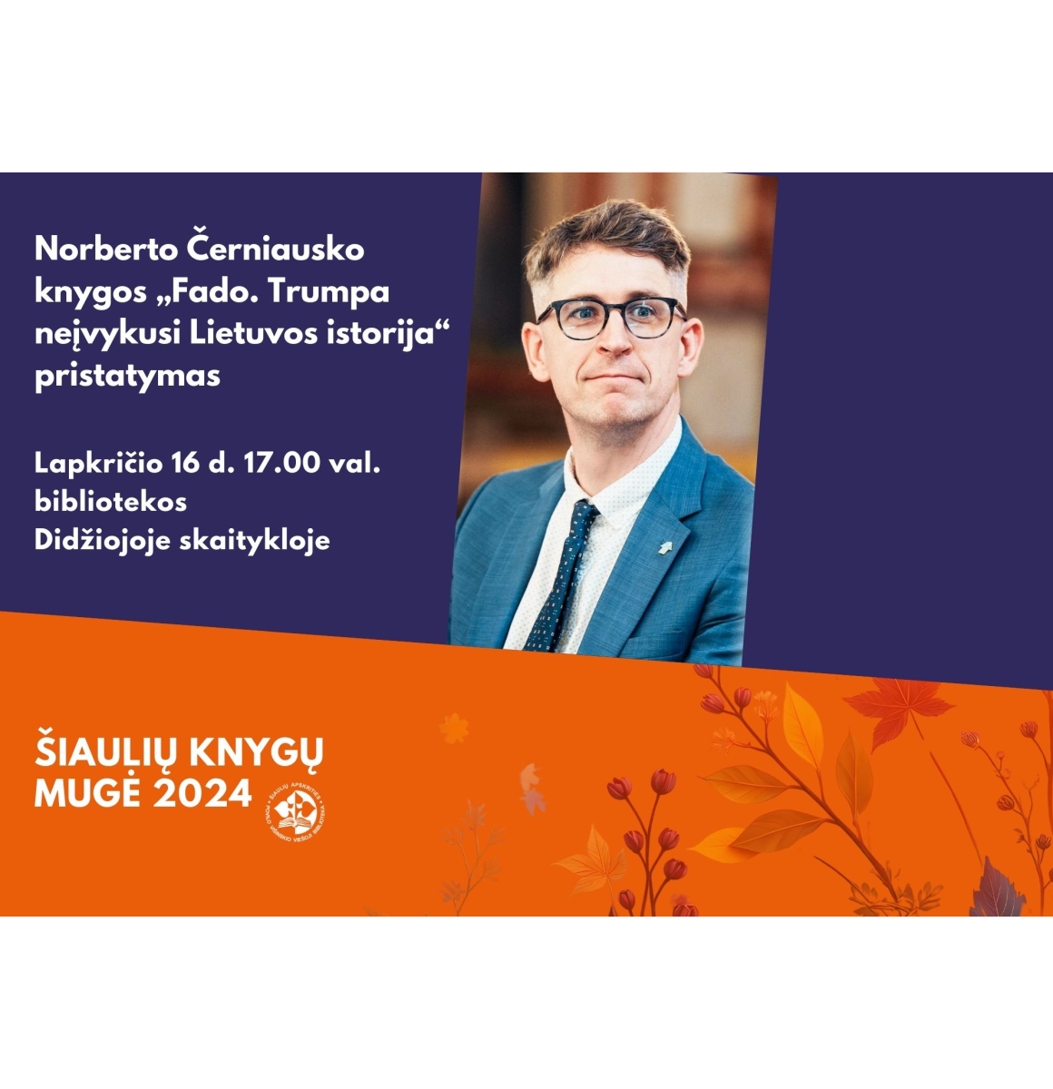 Lapkričio 16 d. 17.00 val. Didžiojoje skaitykloje (III a.) vyks Norberto Černiausko knygos „Fado. Trumpa neįvykusi Lietuvos istorija“ pristatymas.