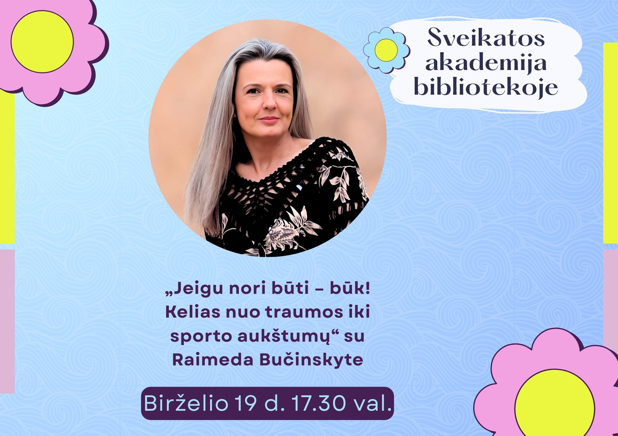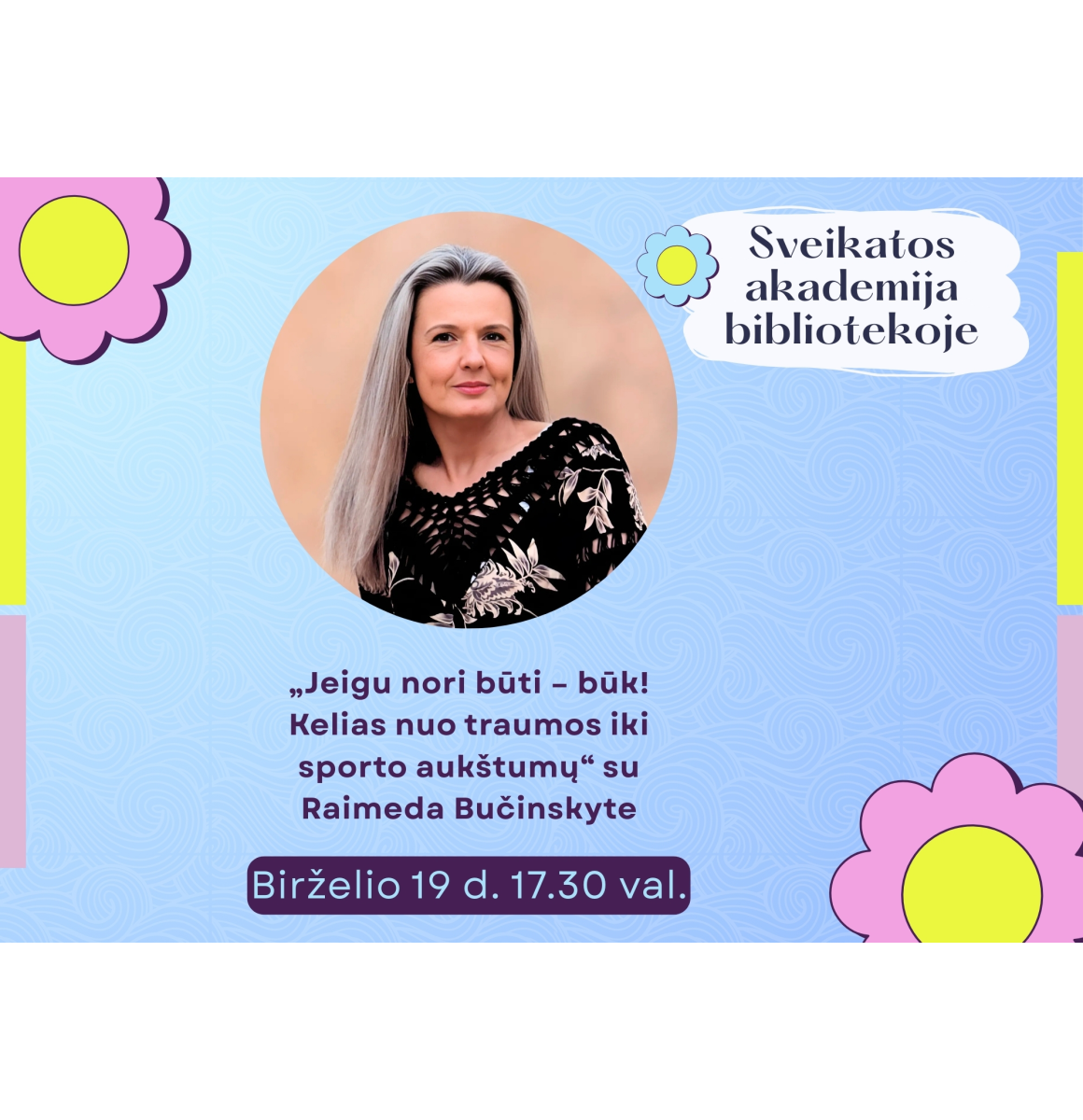 Birželio 19 d., ketvirtadienį, 17.30 val. bibliotekos Didžiojoje skaitykloje (III a.) vyks paskaita-diskusija. „Jeigu nori būti - būk! Kelias nuo traumos iki sporto aukštumų“ su Raimeda Bučinskyte.